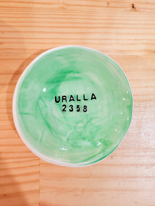 Late Night Pottery Round Trinket dish with Uralla + postcode