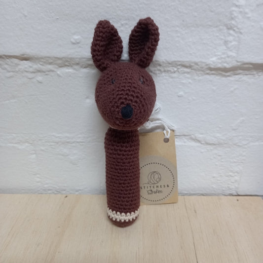 Stick Rattles with native animals by Stitches & Knots