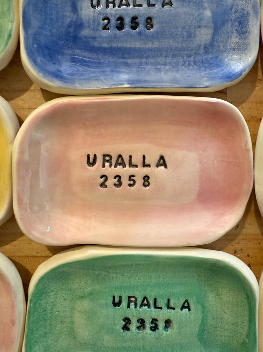 Late Night Pottery Rectangle Trinket dish with Uralla + postcode