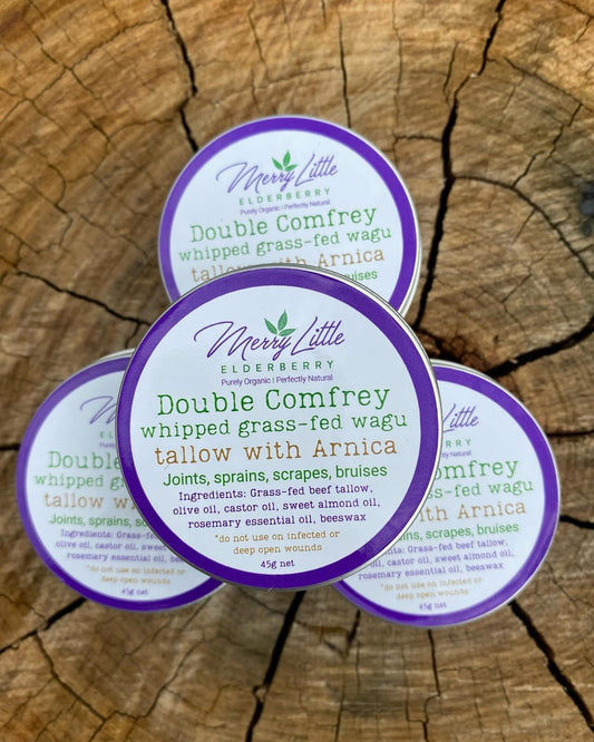 Double Comfrey whipped grass fed wagu tallow with arnica by Merry Little Elderberry