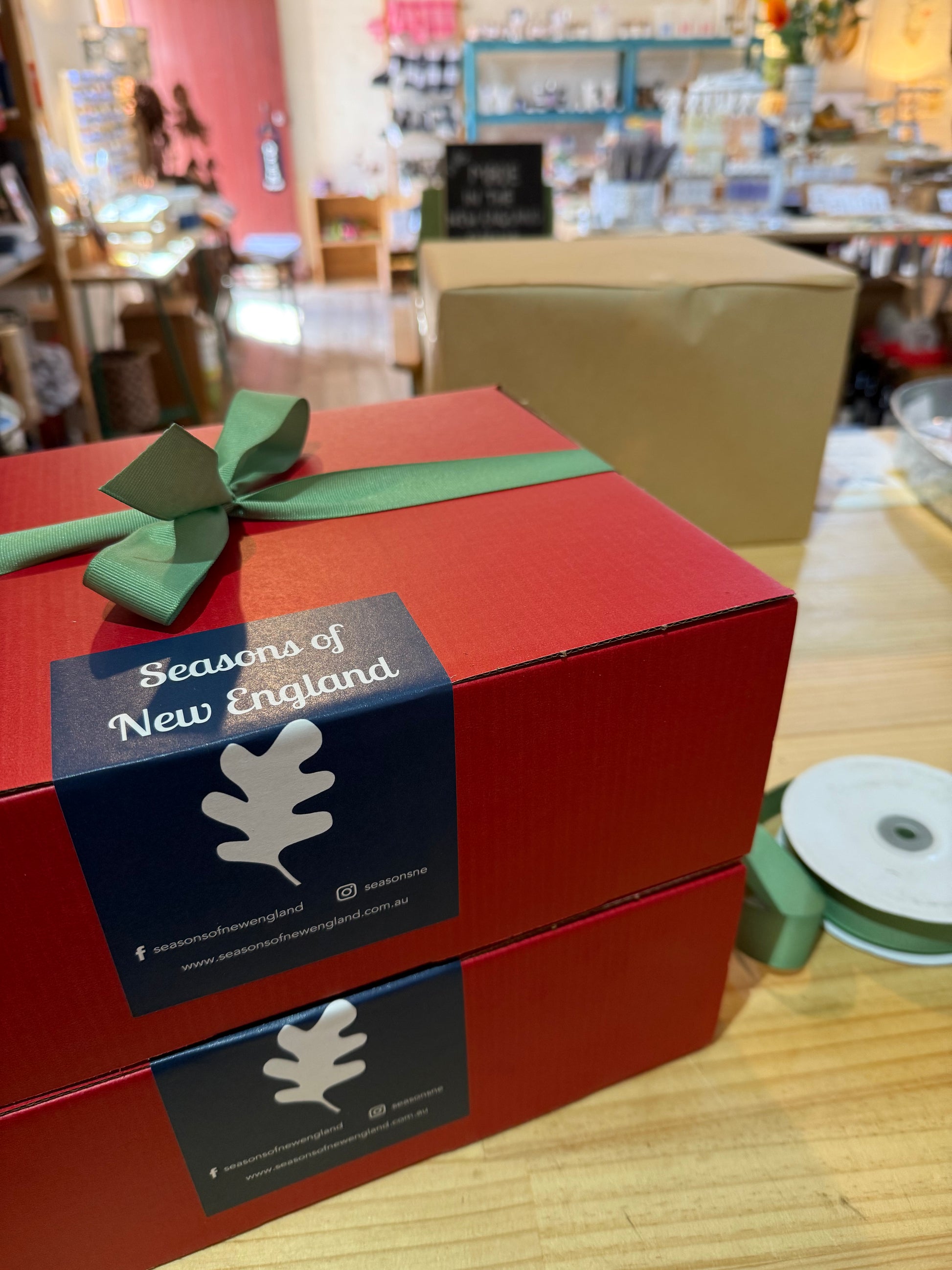 Ordering large quantities of hampers or putting together a special order is no trouble - email info@seasonsofnewengland.com.au or call 0434 408 163 and we will organise what ever you need.
