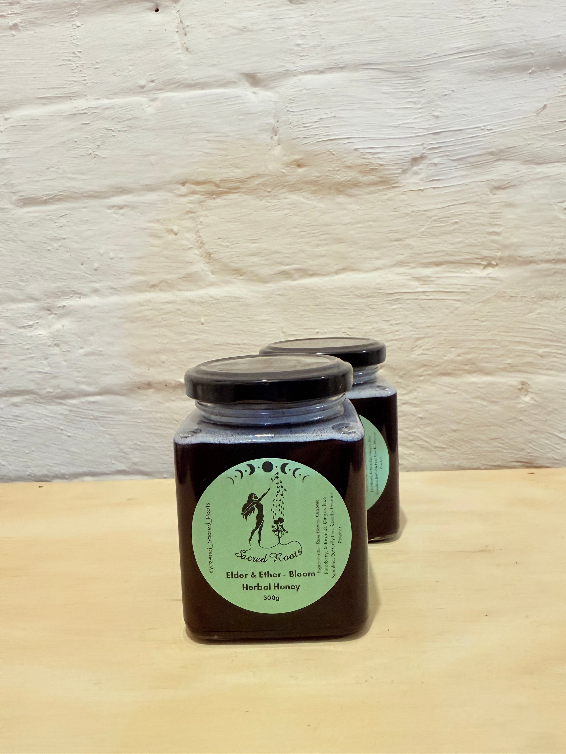 Elder & Ether Bloom. Ingredients - Raw Honey, Organic Elderberry, Astragalus, Ginger, Blue Spirulino, Butterfly Pea, Rosella Powder